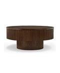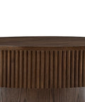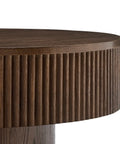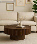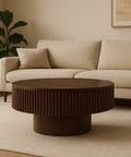 The Vivid Walnut Wooden Round Coffee Table brings a warm, inviting touch to modern and contemporary interiors with its perfectly round tabletop design. Crafted from a blend of solid and manufactured wood, the oak veneer finish in rich walnut highlights natural wood grain patterns, adding texture and depth to your living space. Supported by a sleek pedestal base in matching walnut, this table offers both sturdy construction and minimalist elegance, making it a versatile addition to city apartments or spacious family homes.