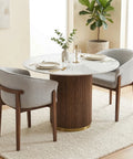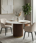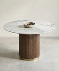 Marcio White Marble-effect Ceramic Top & Wooden Base Round Dining Table - 120cm - Pattern C