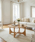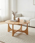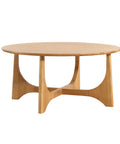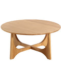 Elevate your living space with the Lumi Oak Wooden Round Coffee Table, a striking fusion of organic warmth and sculptural design. What sets it apart is its artistic cross-braced base—featuring elegant curved open cutouts that create a light, airy silhouette, turning a functional piece into a focal point of modern decor.
