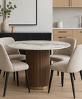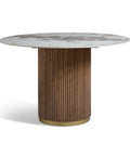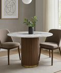 Marcio White Marble-effect Ceramic Top & Wooden Base Round Dining Table - 120cm