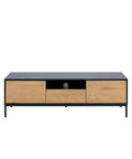 Streamline your entertainment area with the Actona Black & Wild Oak TV Unit, a perfect blend of modern elegance and practicality. Featuring a sleek black top and frame, complemented by matte wild oak effect doors and drawer, this unit offers a contemporary yet timeless look. Designed with push-to-open doors, soft-close functionality, and a built-in wire management system, it ensures clutter-free organization and effortless convenience.