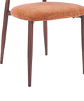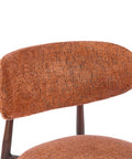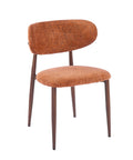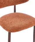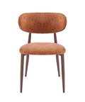 - Warm burnt orange velvet upholstery with a textured weave for a bold, inviting aesthetic