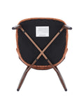 - Curved brown metal back support bar adds sculptural detail while reinforcing the backrest