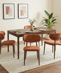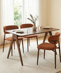 The ergonomic rounded seat and high-density foam filling deliver lasting comfort for meals and gatherings, while the robust brown iron pipe frame ensures stability and easy to assemble, this set blends luxury and functionality seamlessly—whether in Burnt Orange or one of the three complementary hues, it’s a stylish centrepiece for any dining area.