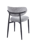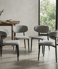 Elevate your dining space with the Almos Set of 4 Velvet Dining Chairs in Grey, also available in Green, White, and Burnt Orange to match your interior style. Crafted with soft velvet upholstery, these chairs feature a distinctive split oval backrest, accented by a curved black metal support bar that adds a sleek, sculptural touch.
