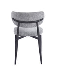 - Curved black metal back support bar adds sculptural detail while reinforcing the backrest