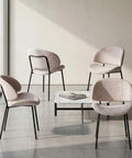 Elevate your dining space with the Wexley Set of 4 Velvet Dining Chairs in Cream, also available in Olive Green, Mustard, and Burnt Orange to match your interior style. Crafted with soft textured velvet upholstery, these chairs feature a distinctive split curved backrest, accented by a black metal support bar that adds a sculptural, contemporary touch.