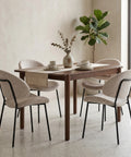 The ergonomic saddle-shaped seat and high-density foam filling deliver lasting comfort for meals and gatherings, while the robust black iron pipe frame ensures stability and durability. This set blends luxury and functionality seamlessly—whether in Cream or one of the three complementary hues, it’s a stylish centrepiece for any dining area.