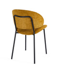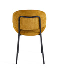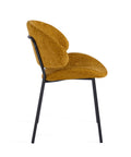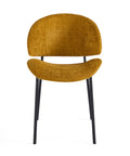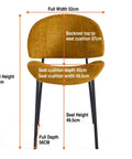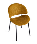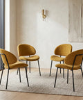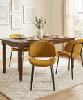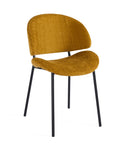 Elevate your dining space with the Wexley Set of 4 Velvet Dining Chairs in Mustard, also available in Olive Green, Burnt Orange, and Cream to match your interior style. Crafted with soft textured velvet upholstery, these chairs feature a distinctive split curved backrest, accented by a black metal support bar that adds a sculptural, contemporary touch.