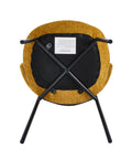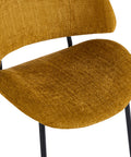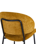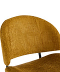 - Warm mustard velvet upholstery with a textured weave for a vibrant, sunny aesthetic