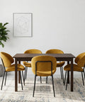 The ergonomic saddle-shaped seat and high-density foam filling deliver lasting comfort for meals and gatherings, while the robust black iron pipe frame ensures stability and durability. This set blends luxury and functionality seamlessly—whether in Mustard or one of the three complementary hues, it’s a stylish centrepiece for any dining area.