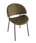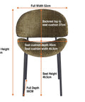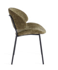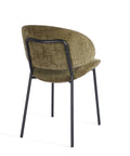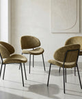 Elevate your dining space with the Wexley Set of 4 Velvet Dining Chairs in Olive Green, also available in Burnt Orange, Mustard, and Cream to match your interior style. Crafted with soft textured velvet upholstery, these chairs feature a distinctive split curved backrest, accented by a black metal support bar that adds a sculptural, contemporary touch.