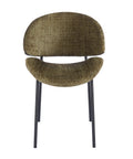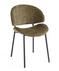 - Fresh olive green velvet upholstery with a textured weave for a natural, earthy aesthetic