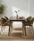 The ergonomic saddle-shaped seat and high-density foam filling deliver lasting comfort for meals and gatherings, while the robust black iron pipe frame ensures stability and durability. This set blends luxury and functionality seamlessly—whether in Olive Green or one of the three complementary hues, it’s a stylish centrepiece for any dining area.