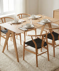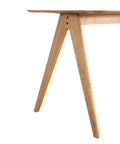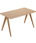 Elevate your dining space with the Edda Oak Rectangle Wooden Dining Table - 140cm, a perfect blend of minimalist design and functional elegance. Crafted with a durable MDF core and finished in a natural light oak veneer, this table features a sleek rectangular top and distinctive angled solid wood legs that create a light, airy silhouette.