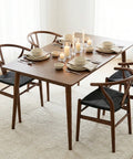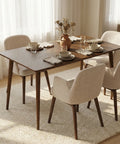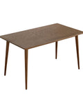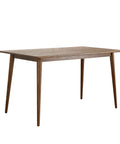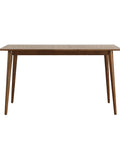 Elevate your dining space with the Gather Walnut Effect Rectangle Wooden Dining Table – 140cm, where minimalist elegance meets architectural design. Featuring a premium oak veneer surface in a rich walnut tone, it offers the warmth of walnut with enhanced durability. Its signature outward-splaying tapered legs create a sculptural, open silhouette while providing strong, balanced support—bringing a refined mid-century aesthetic to modern interiors.