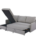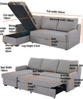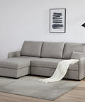 - L-shaped corner design with lift-up chaise storage for flexible layout