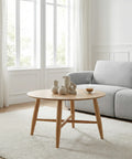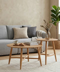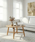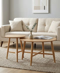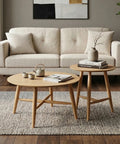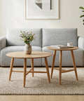Refresh your living space with the Sander Round Wooden Coffee Table and Side Table Set - Oak, a study in understated elegance and functional harmony. This set centers on a classic round design with streamlined solid wood legs and cross-brace support, delivering a light, airy profile that elevates any modern or minimalist interior.