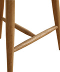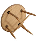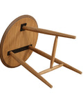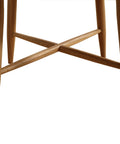 - Classic round silhouette with slender solid wood legs and cross-brace support for a clean, stable foundation